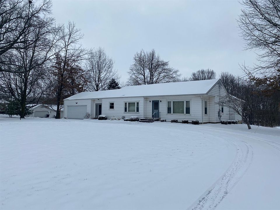 Don't be fooled from the street, larger than it appears! Clean 3 bedroom 2 bath ranch home setting on 1.4 acres. Home had a rear addition creating a nice bedroom suite and 1st floor laundry. Enclosed breezeway, oversized attached garage, covered rear porch overlooking the spacious back yard, and concrete circle drive. Curved arch ways and hardwood floors under the carpet. Seller will view offers on Friday Feb 5 @ 2 pm. Seller reserves the right to accept an offer @ anytime.