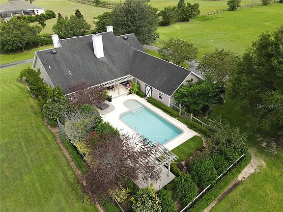 Don't miss this one! This beautiful 3/4/3 colonial style home has all the details. Privately gated flag lot composed of two 5 acre parcels combined to make a great 10 acre estate. Both parcels have their own separate entrances and would make a great family divided property if desired. There's plenty of room to park with a two car garage and a separate (attached) single car garage that has climate control. In the back there is a nice steel 30x30 barn with a 12 foot full length lean-to attached built over concrete slab. Bring your RV or boat and park protected from the elements. Behind the barn, let the horses out in the fully fenced no-climb paddock. Relax in the fully fenced in pool area with mature landscaping, a pergola, and an outdoor brick fireplace. Once you have cooled off in the salt water chlorinated pool, get warmed up playing a round of beach volleyball just outside the pool area. Retreat to the inside and be welcomed by the coziness of this layout. Great for entertaining, but also perfect for a cozy date night by the fireplace. Porcelain tile throughout the main living area and bedrooms, ceramic tile in the galley style kitchen. Built in appliances and granite countertops, the kitchen is just gorgeous with all the upgrades. Formal dining room and also an office that could be converted into a fourth bedroom. Upstairs boasts a theater room, complete with a 150" projector screen and ceiling mounted projector. Easily seat a dozen guests in your new theater room complete with half bath, wet bar and surround sound. Don't wait, you may not get another shot at a home with all the finer details and upgrades already in place!!