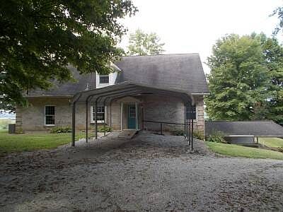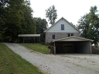 BRICK 2 STORY BUILT IN 1997 WITH 3BEDS AND 2 AND 1/2 BATHS VIEW OF OHIO RIVER. ON 8 ACRES WITH SEVERAL OUTBUILDINGS AND LOTS OF TREES. 0.5 Miles from city limits. Lots of space in this one! Features open livingroom, kitchen and dining! Lots of windows bring in the beautiful view! Master suite on main floor with separate shower and tub. Upstairs are 2 bedrooms, full bath and a bonus room. Full Basement with poured walls with Garage is unfinished. Covered carport and Pole barn