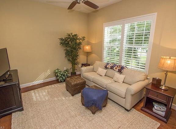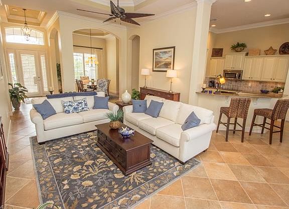 JUST REDUCED...This **TURNKEY FURNISHED **Windjammer home features 2450 sq. ft., 3 bedrooms plus den, 3.5 baths with a beautiful outdoor living space around beautiful salt water pool. It features upgraded cabinetry, Kitchenaid appliances and more. The large lanai has an incredible view of water and golf which is difficult to beat. Home is located on a pie shaped lot which offers tremendous privacy. The Quarry is the only Lake Front community with a boatable lake. Enjoy water skiing behind your up to 26' power boat, use a jet-ski, sailboat, canoe, kayak, or party barge. Recent addition to the Beach Club has been completed and adds to this community additional social area making it the best amenity package available for a community of this size. Resort Style pool, tennis, lap pool, workout facility, tot lot, restaurant and lake are available for your enjoyment,