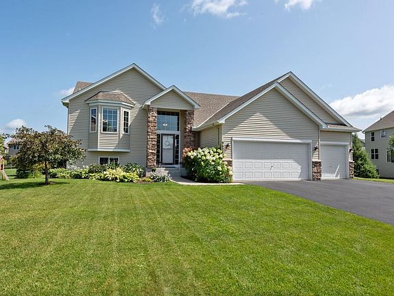 Beautiful home with over 2800 finished square feet. Upper level is open and airy with tons of natural light. Master bedroom features large walk in closet and private master bath. Lower level is a walk out and was professionally completed in 2017 with corner stacked stone fireplace in the family room, nice kids play area, and a full bath. This home has wonderful vaulted ceilings, and the upper level walks out to freshly stained deck. The location is so nice, and is close to parks and bike paths. Look no further for a nicely appointed home in the Hunters Crest Neighborhood and priced to sell.