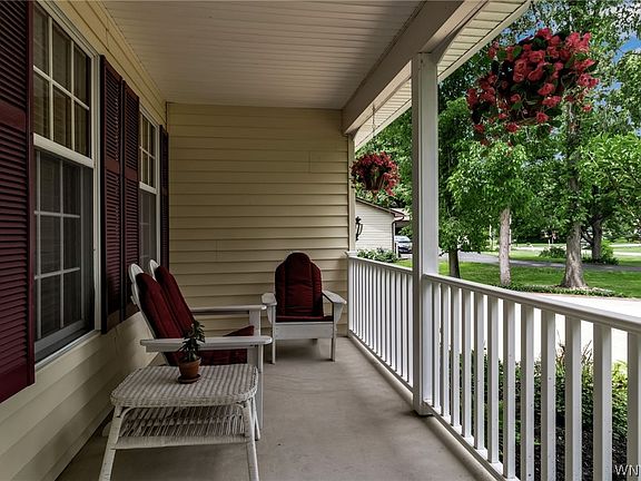 Welcome to this beautiful Colonial nestled on a picturesque 7.13-acre lot in the heart of Clarence. Well-maintained by original owner offers 4 bedrooms, 2.5+ baths, this custom-built home offers comfortable living spaces and a tranquil retreat. This solid home boasts many wonderful features: gorgeous remodeled eat-in kitchen with island/breakfast bar, granite, tile backsplash, SS appliances, pantry, tons of cabinet & counter space w/ slider led to spacious deck, patio and 16x12 shed overlooking an expansive backyard. Great rm w/ cozy gas fireplace & formal dining rm w/ hardwood floors. Primary ensuite features newly remodeled private bath w/ shower & sink vanity. 3-spacious bedrooms w/ great closets & updated full bath. 1st floor laundry and so much more! Beautiful landscaping and mature trees. Updates: Roof '06, Furnace ’20, HWT ’21, Generator ’15. Great location nearby all conveniences! Highly rated Clarence Schools. A must-see! Showings being Friday, 6/7. Offers due Tuesday, 6/11, @ 1 pm.