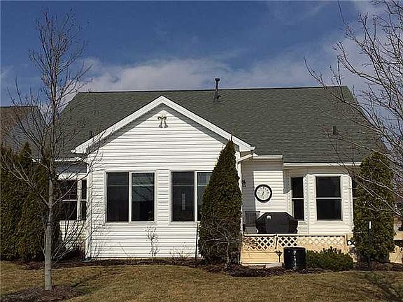Waterfront retreat with a maintenance free exterior living which consist of vinyl & cultured stone* Many extras include: 42" cabinets, stone gas fireplace with remote, granite countertops, island/bar, expanded garage with utility sink & double doors. The monthly fee of $115 includes use of the clubhouse & swimming pool plus lawn care/snow removal is taken care of for you* This home is a must see!*