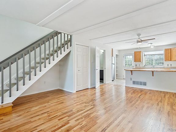 Welcome to this beautifully updated two-bedroom, two-bathroom condo located in the highly sought-after Dakota Station community in Littleton! This light-filled home boasts an inviting floor plan featuring two spacious upper-level bedrooms with soaring vaulted ceilings, skylights, and an abundance of natural light.