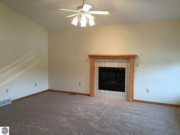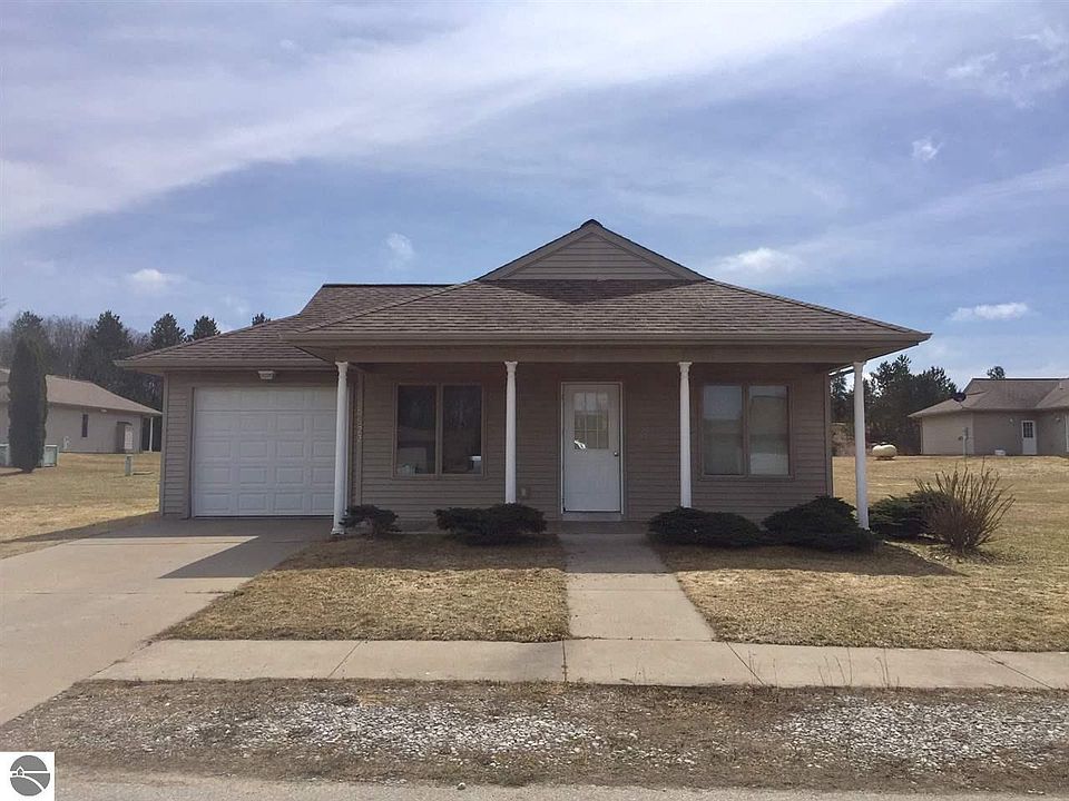 Get ready to move into this adorable, affordable, 2BR, 2.5BA stick built home. Enjoy the covered front porch, gas fireplace, cathedral ceilings, 6 panel wood doors and each bedroom has it's own full private bath! The large bright kitchen comes with all appliances. Attached 1-car garage with a paved driveway. Also included is an additional vacant lot in the sub. Centrally located between Kalkaska and Mancelona. Association dues cover water, sewer, lawn care, snow removal and trash removal. This home has a lot to offer at a great price!