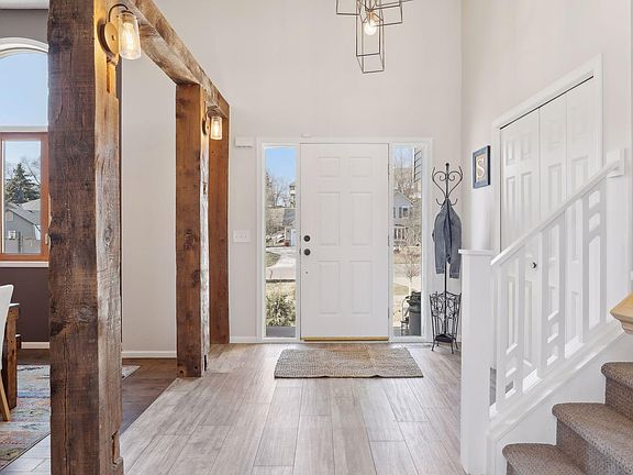 You do not want to miss out on this beautifully remodeled home just steps away from Colby Lake & miles of trails. As you walk in the front door you will be impressed w/the quality finishes & attention to detail incl. the dramatic 12 ft. ceilings, rustic wooden beams & shelving. The Kitchen features a large picture window w/view of the backyard, updated cabinets, counters, backsplash, shelving & built-in bench seating in the Informal Dining Room! The Formal Dining area offers enough space for a large table & the Flex Room is an additional bonus room off the Kitchen! The Main Floor also includes the spacious Living Room, Office, Laundry Room & 1/2 Bath! The Upper Level has 3 Bedrooms, Full Bathroom,& an updated Private Owners 3/4 Bathroom w/a large walk-in closet. The Lower-Level Walk-out Rec Room features knotty pine walls, including great Wet-Bar area w/center island & seating. The Lower Level also incl. the 4th Bedroom, 3/4 Bathroom & exercise/bonus area! Roof 2023 #833 Schools!