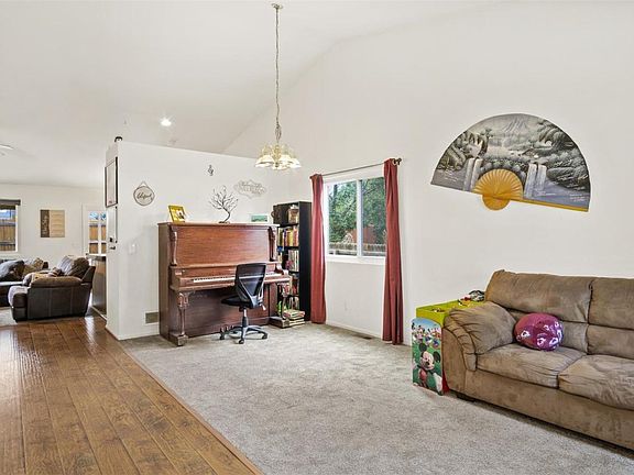 Charming open concept with vaulted ceilings, updated kitchen, wood flooring, and private backyard. This Harvest Ridge home has three bedrooms (including a spacious master), two bathrooms, and two living areas offering flexibility for how you want to live your life. The kitchen with two-tone cabinets and granite counters, flowing into living room or out onto the deck, making it the hub of the home. The backyard offers privacy and shade plus an exterior storage shed. Updated HVAC means you can focus on making it all yours. Convenient access to I-25, shopping, and restaurants. Come take a look!NOTE: 3rd bedroom is not in photos, but is conforming and on main floor. Extended family member currently living in that room, so it's packed with their stuff. This, plus a baby, is the reason for home-shopping. :-)Back on the market as cash buyer failed to deposit earnest money.