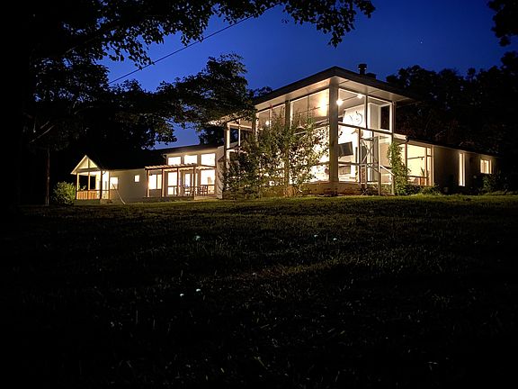 Welcome to The Farm.This one of a kind architectural home sits on 38 elevated acres with over 3,000 SqFt of finished living space and surrounding countryside views. Get drenched in natural light with 14ft+ ceilings & endless windows. 5 bed, 3.5 bath, in-law suite, 2 masters, basement, art studio/flex space.Hardwoods, concrete, and tile flooring. Vaulted ceilings, exposed beams, spruce hallway & barrel ceiling breezeway.Enjoy your morning coffee on one of the two screened-in porches or under the pergola while watching the herons come & go from rookery on property. Opportunities are endless at the farm with a 50'x36' pole barn wired for weddings & events. Toolshed with 6" concrete pad, plumbed, walk in freezer & ample space for tools & farm equipment. ADDITIONAL HOUSE on the property for AirBnB, rental, in-laws. Beyond the beauty of the rolling pastures and mature hardwoods, the grounds have been contoured to prevent runoff, ~5000 ft of high tensile fencing w controller creating 8 paddocks for rotational grazing, including one ~2 acre silvopasture paddock for fall grazing. **13 MILES FROM DT DURM.**