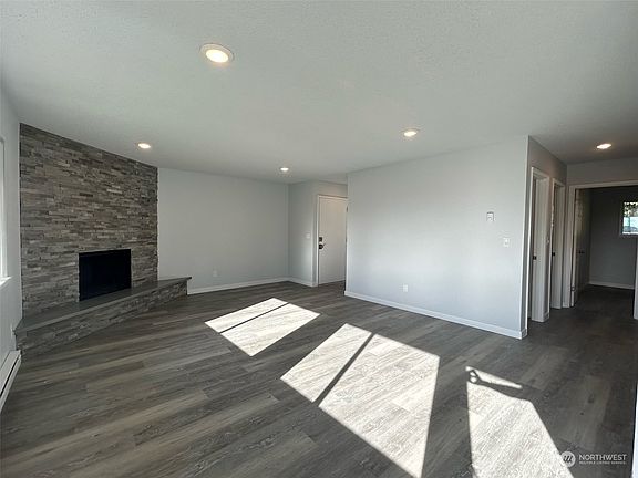 Beautifully remodeled 2 bedroom condo in Heather Ridge community. Top floor condo with deck, wood burning fireplace, and amazing light. Completely updated with all new modern finishes: Luxury plank vinyl flooring, natural fireplace tile, quartz countertops, stainless steel appliances, cabinets and vanities, tile shower and bathtub surround, as well as new windows and doors. Property offers ample parking, community pool, athletic court, and cabana. New roofs in 2021, no pending special assessments, and NO RENTAL CAP. HOA includes water, sewer, garbage, and extended basic cable TV. Enjoy all this conveniently located on Kent's East Hill, near Sounder, shopping, and Hwy 167.