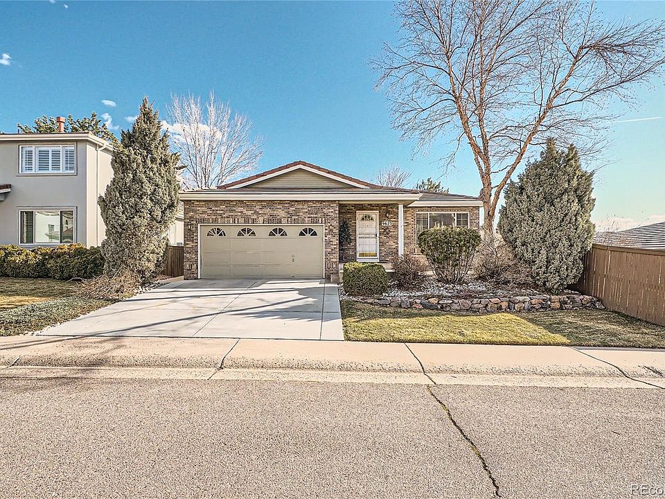 Don't miss out on this rare ranch home that provides the comfort of main-level living in lovely Highlands Ranch. This beautifully appropriated home has been well cared for and shines with elegant finishes throughout. The open floor plan, high ceilings, and plentiful windows allow excellent natural light. The living room, dining room, and kitchen flow together seamlessly with real hardwood flooring, and are accented with a double-sided marble tiled gas fire place that can be viewed and enjoyed whether lounging, cooking, or dining. The kitchen boasts ample storage with refinished cabinets and Corian countertops. The bonus sun room opens to a concrete patio with a lovely pergola for shading on warm days. The back yard is fully fenced with privacy fencing, and there's a bonus playhouse hidden behind the trees! The primary bedroom is spacious with an ensuite 5-piece bath that has been uniquely remodeled using gorgeous jade green marble tile. A home office on the main floor offers built-in shelving and a great place to work from home. The main level also offers a second full bath, a second bedroom with a walk-in closet, and laundry area. Venture down the stairs to a large bonus room with endless possibilities for entertainment, fitness or hobby spaces. The basement also features a third bedroom with a walk-in closet as well as a third bathroom. This home offers a fully finished basement and large windows for natural light. Another bonus on the exterior, the concrete driveway was updated only two years ago and features an additional 3 feet in width from the builder standard. Also, the Highlands Ranch Community Association provides homeowners with access to recreation centers, parks, and open space trails. Welcome home!