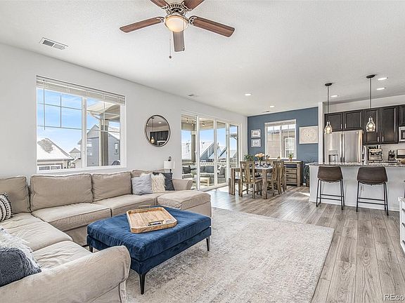 Welcome home to desirable Cornerstone featuring classic style with modern finishes. An abundance of large windows throughout the main level draw in tons of natural light in this open layout. Many upgraded finishes throughout including luxury vinyl flooring, granite counters, SS appliances, upgraded bathrooms & grand 9' ceilings. The main level features a home office & an open concept kitchen that flows into the living and dining areas, ideal for entertaining. Home cooks will love the oversize center island, 42 espresso cabinetry, backsplash, pantry & gas range. Retreat to your spacious primary suite, complete with a walk-in closet & 5-piece bath. 2 secondary bedrooms, a full bath & upstairs laundry round out the upper level. Enjoy relaxing or entertaining year-round on the backyard covered concrete patio. Book your showing and get into your new home before the summer arrives!