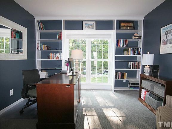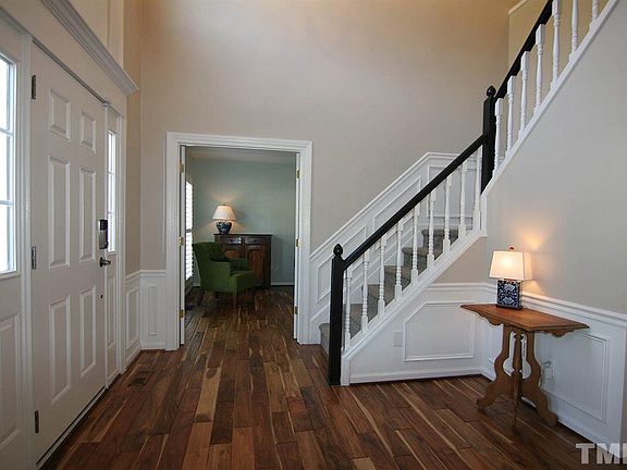 Immaculate updated home in desirable pool & tennis community!Convenient to 540, RTP & RDU.Gorgeous Brazilian hardwoods.Spacious formals include living rm w/french doors & dining rm w/wainscotting & elegant crown molding.1st fl office has built in shelves & double doors for privacy.Kitchen made for a chef w/granite, stainless, center island, new gas range & pantry w/custom shelving.Light & bright family rm w/wall of windows & gas fireplace.Vaulted master suite w/walk-in closet & spa bath.Private back yard.