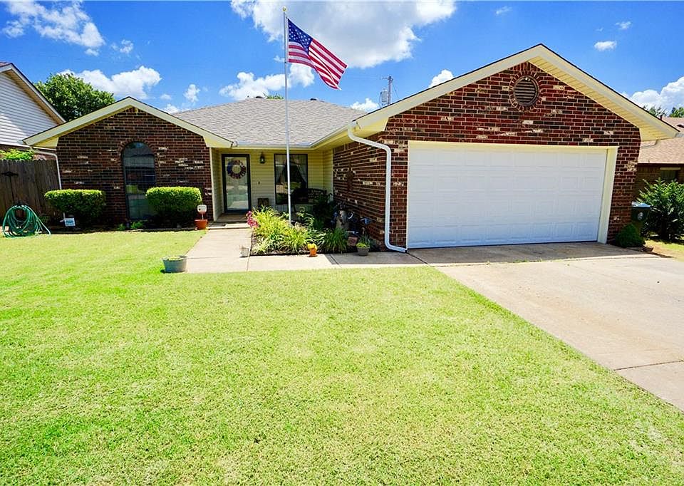 Great 3 bed 2 bath home in Carl Albert schools. When you walk into this home you are greeted with a large living room with skylights and gorgeous fireplace. French doors lead you out to your covered patio and good sized yard. Yard is just the right size with storage building and room to entertain. Backyard has gate access to Carl Albert High School. Master suite with walk-in closet and private exit to back patio through French doors. Guest bedrooms are on the other side of the home and are god sized with great closets. Newer heat and air, dishwasher and gas stove. Indoor laundry and insulated garage doors. Close to Tinker AFB and minutes to downtown.