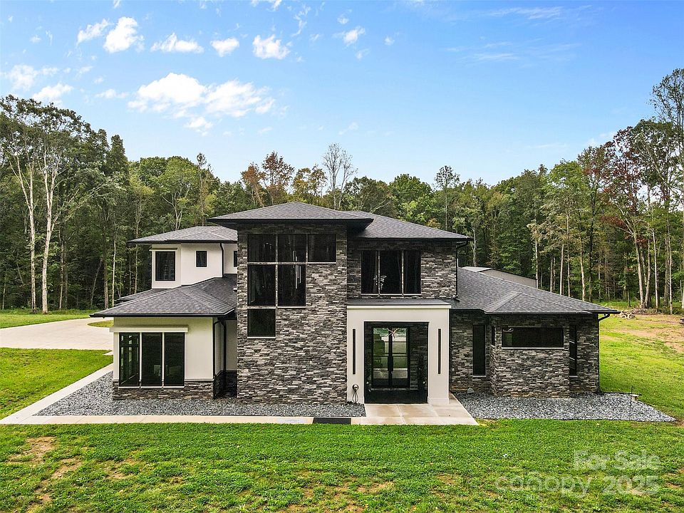 Welcome to your private modern retreat in Huntersville! Nestled on over 5 acres, this stunning custom-built estate offers privacy, luxury, and thoughtful design throughout. Surrounded by mature trees, the property provides a serene setting while still being minutes from conveniences. This property also features a solar powered gate entrance.