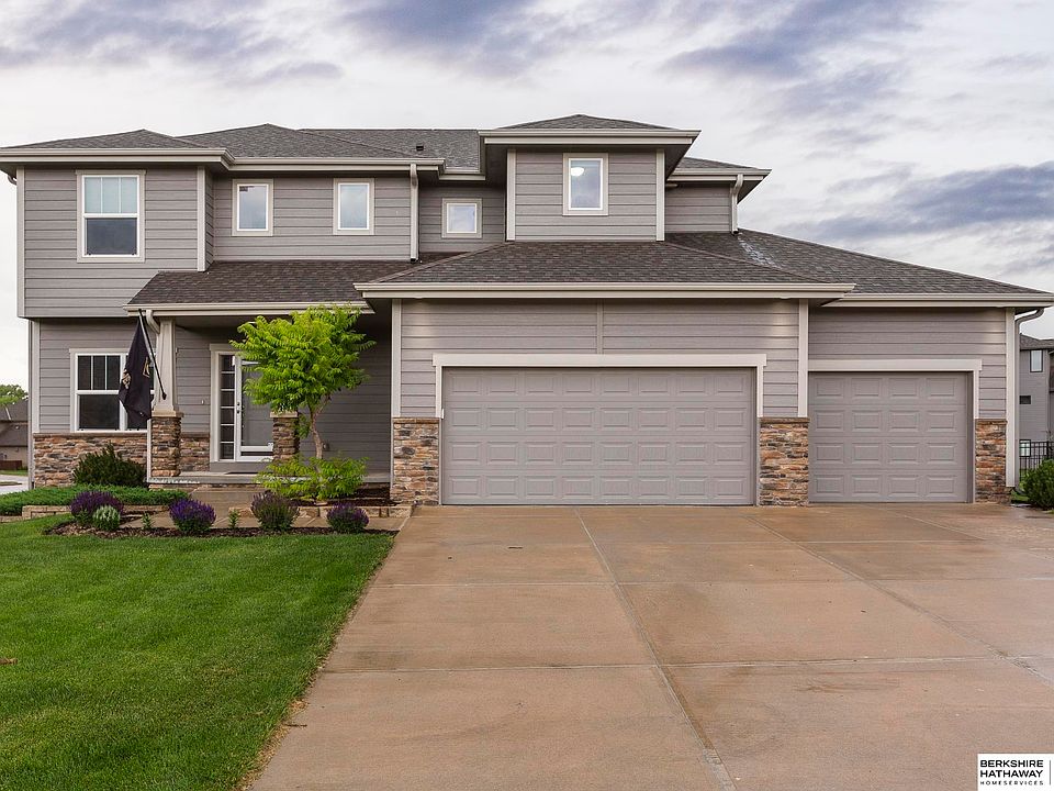 Fabulous 2-STORY sits on a huge corner lot in Bennington's popular Heritage subdivision! 4 BDRM/3 BA/3 CAR. Stunning entry w/soaring ceiling leads to spacious open floor plan between the FR & kitchen. 9'+ ceilings, stone FP, large dining area, kitchen island, large walk-in hidden panty, built-in buffet & so much more. Main floor also boasts office/flex room (would make a great play room), 1/2 BA & mudroom. Lovely PRIM BDRM & en suite w/split vanities, large shower, separate toilet room & walk-in closet. Convenient 2nd floor laundry close to all the BDRMS. Unfinished basement provides great storage w/the option to add tons of additional living space w/your own personal layout & design. The huge yard has tons of trees, beautiful landscaping & sprinkler system. Plenty of room to add a pool or sports court. Great location & neighborhood. You are going to fall in love with this beautiful home and all it has to offer. Why wait to build? Come check out this MOVE-IN-READY home today!