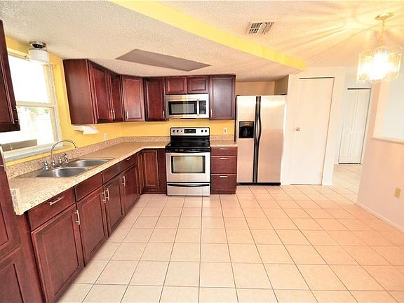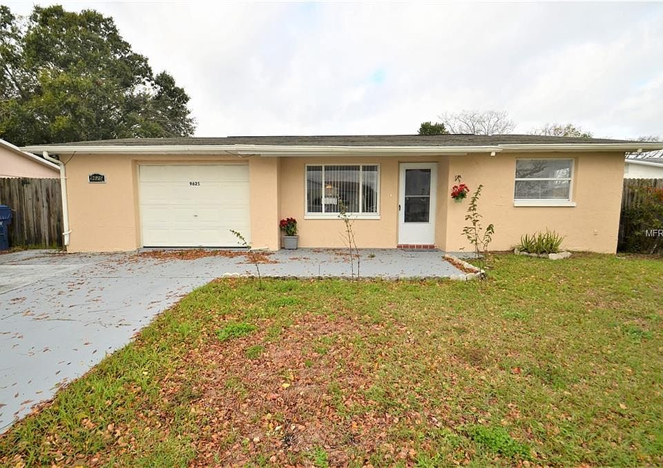 Wow, cute 2 bedroom and 1 bath home that has been remodeled. Updated cabinets and counters. Newer appliances. Tiled floors throughout. 6 panel doors. All windows have been replaced and have blinds. There is a bonus room in the rear that can be used as a 2nd living room or a bedroom. Enjoy pleasant weather from your screened and roofed porch. The large rear yard is completely fenced and has a nice shade tree. The garage is oversized with a painted floor and cabinets on both sides. A new side door leads to the rear yard. Washer/dryer hookup is in the garage. Roof replaced in 2005. Embassy Hills is so very convenient to Gulf View Square Mall and a large variety of restaurants and shopping. Schools are Chasco Elementary and Middle schools and Fivay HS.