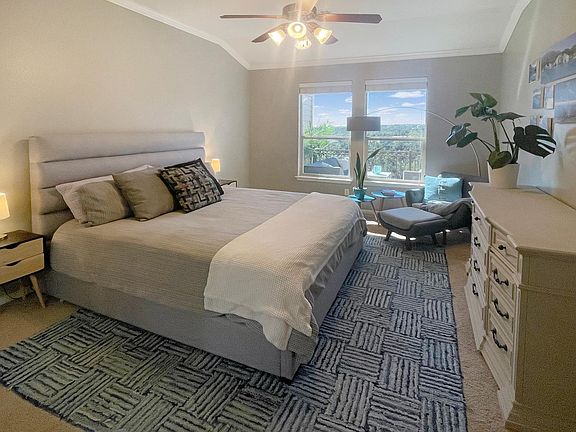 Perched on a dramatic cliff in the exclusive gated community of Colina Vista, this 4-bedroom, 2.5-bath single-family home combines luxury, convenience, and breathtaking natural beauty. The open-concept layout features expansive living spaces filled with natural light, a modern kitchen designed for both entertaining and everyday living, and a primary suite complete with a spa-inspired bath and walk-in closet. The attached two-car garage offers practicality, while thoughtfully designed finishes and high ceilings add an air of sophistication throughout the home. Just minutes from Vandegrift High School and the scenic stretch of State Highway 2222, this property strikes the perfect balance between Hill Country tranquility and quick access to downtown Austin. The true showpiece of this home is its cantilever deck, extending boldly over the cliffside to capture uninterrupted views of the Hill Country and downtown skyline. Whether enjoying morning coffee or hosting sunset gatherings, this outdoor sanctuary delivers an unparalleled connection to nature. The Colina Vista community offers resort-style amenities, including a swimming pool and dog park, all maintained within a secure, low-maintenance environment. With its rare combination of location, luxury, and sweeping vistas, this home is a perfect retreat for those seeking both elegance and adventure. 12-month lease minimum Smoking not allowed inside the unit HOA maintains the front yard Tenant pays for all utilities