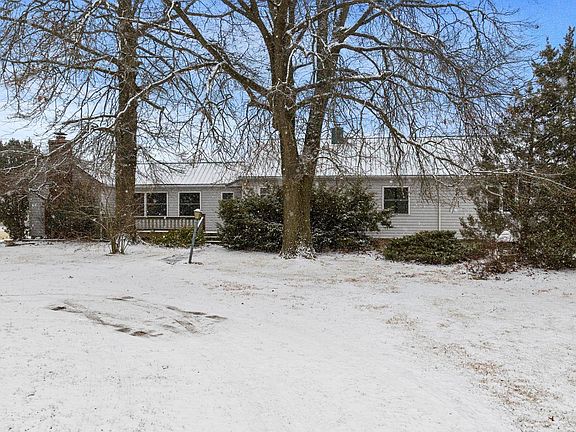 On this picturesque 3-acres, this 1950s home offers a blend of character & potential. With ample outdoor space & a spacious floor plan,this is a blank canvas. From the circle drive, walk up to a relaxing front porch. Inside you find a large living area w/ hardwood floors & extensive reclaimed baseboard molding. To the left of that is the open kitchen which leads to the dining rm that then leads into the den w/ built-in shelving & cozy fireplace. Seller has never used fireplace & is sold as is. The hallway to the right of the living room, leads you to the main bath, with classic tile work, as well as one of the bedrms. The highlight is the expansive family rm, complete with sunken hot tub. Seller has never used the hot tub but appears to work. Sold AS IS. This space leads to the main bedrm through french doors w/ 2nd bathrm. The basement is just off the dining rm & has the washer and dryer. Outside, a detached garage/barn offers ample storage space. Explore the expansive grounds and mature trees. Conveniently located near 469