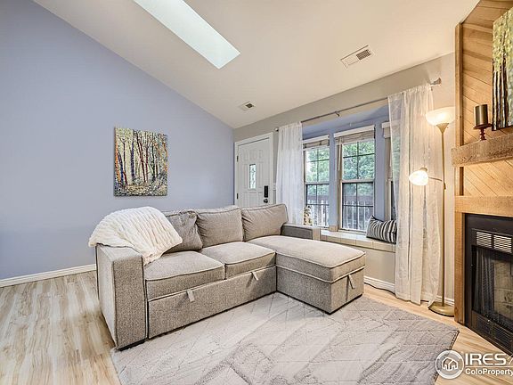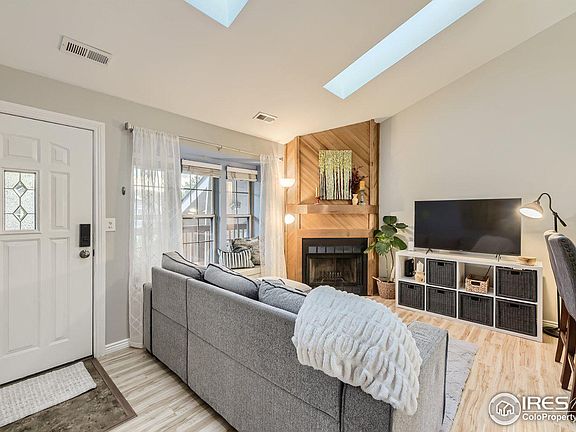 This well-appointed, priced-to-sell 2nd floor condo feels larger than its square footage thanks to high vaulted ceilings throughout. The one-bedroom, one full-bath unit with in-unit laundry is filled with natural light pouring in from skylights, creating an airy atmosphere. Located just steps from the Rocky Mountains in Littleton, you can catch a glimpse of the stunning view from the front porch deck. The open floor plan features a living room with a decorative wood-burning fireplace, perfect for cozy evenings. An expansive windowsill awaits your indoor plants, adding a touch of nature to your home. The kitchen offers a perfect blend of convenience and elegance, with a spacious eat-in counter ideal for enjoying meals atop a barstool. The included washer and dryer combine functionality with style. The high vaulted ceilings continue into the bedroom, which is bathed in natural light and boasts a generously sized closet. Whether lounging inside or out, the private balcony provides a fantastic retreat to enjoy the crisp Colorado air. A storage closet off the balcony is perfect for housing your favorite hobby items. This unit also includes a full bathroom, perfect for soaking away your day. Situated on the second floor of Dakota Station, residents enjoy access to a community pool and easy access to Kipling and C-470. It's within walking distance to Willow Creek Park and Playground and close to Chatfield Reservoir and Columbine Knolls Village shopping center. Don't miss the opportunity to call this wonderful condo home!