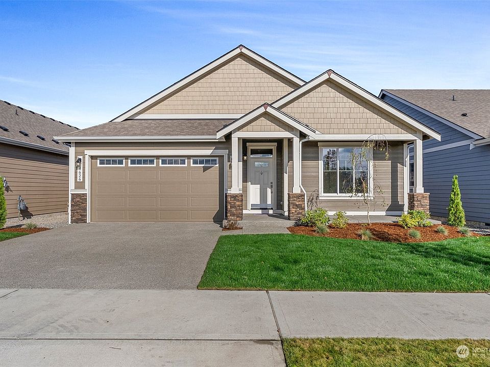 Just completed! Take a tour of this luxury rambler by Rob Rice Homes, The Hemlock. Offers 2 bedrooms + den or 3rd-bed option. 2 baths/2 car garage. Contemporary finishes, open concept kitchen, center island w/quartz counters & stunning SS appliances. Canyon Creek cocoa-stained maple cabinets throughout w/full extension guides & soft closure drawers. Hardwood flooring in entry, kitchen & dining. Cozy gas fireplace in living room. Hard surfaces throughout + tile flooring on the primary bathroom. Front & back landscaping w/privacy fencing in backyard. New energy code includes heat pump, solar panels, & electric hybrid water heater! A must see!!