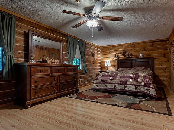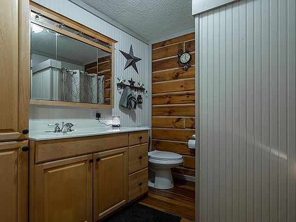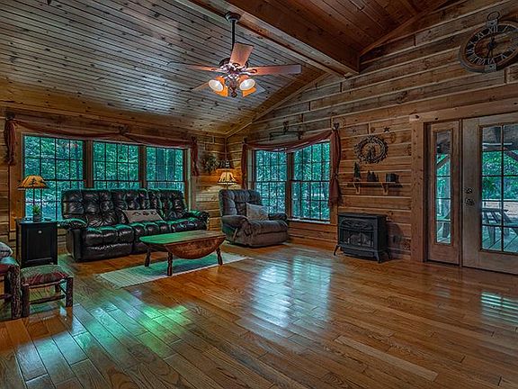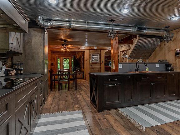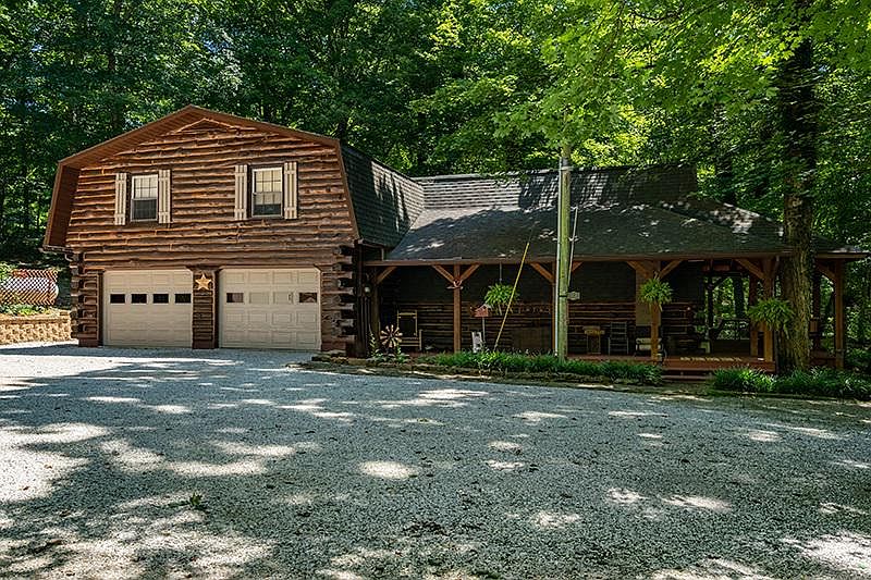 Live year round in Paradise! Updated to perfection describes this 3 bedroom, 2 bath log home on over 8 acres. Amazing chef's kitchen with custom Masterbrand cabinets installed in 2018 with new appliances installed in 2019. Enjoy your evening in the family room with vaulted ceilings and wrap around windows. Just off the family room is a large covered porch with views of the creek and woods. Outside is where you'll spend most of you time enjoying the stocked lake and the huge 48 X 34 detached garage! This garage is heated and equipped with kitchen and bath. If you like privacy this home is for you.