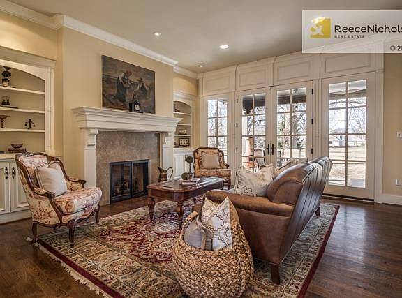 Nestled in the heart of Leawood, this extraordinary estate home boasts 5 beds, 4.1 baths on almost 1 acre lot. Impressively high ceilings greet you upon entering this one-of-a-kind home! Custom features throughout, thick crown molding, beautiful hand hewn beams, stacked stone firepl, solid oak flrs with walnut accents, and much more! Luxury open plan kitchen w/ egranite, VIKING appl. and subzero flows into great rm, perfect for entertaining. 2 Laundries. Spacious master bdrm features coffee bar & spa-like en suite.