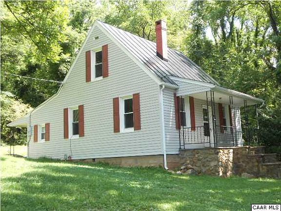 Minutes off 250 West and 64, this 1 Br. Cape Code offers privacy w/4 ac. Home offers Heat Pump w/AC, high ceilings, relaxing soap stone front porch, storage shed and land for gardening. Paved secondary state road only 20 min. to C'ville. Owner/Agent.