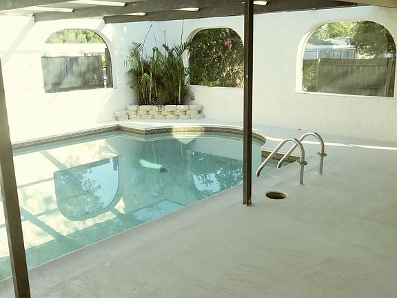 Welcome home to this 3 bedroom, 2 bath home located on a beautifully landscaped property which includes mature trees, fruit tress and Palms. Enter using the keyless entry front door and step through onto beautiful new Terra Cotta Floors. This home has been completely remodeled using earth tone colors both inside and out. Many updated features are showcased throughout the home; remote controlled ceiling fans, cordless faux wood blinds, and raised panel interior doors with new hardware. The Roof is ONLY 7 years old and in great shape! A/C Condenser and Air Handler are BRAND NEW! Water heated is only 5 years old, and many new windows along with so many more gems to see. French doors with inlay-ed blinds lead to the pool area. There is a large deck to entertain and make those special Florida Memories. Screened in pool and fenced in yard also provide you with tons of privacy. Also there is room for RV or boat on the property. Back inside the Kitchen cabinets, granite counter tops are all brand new. Brand new microwave and gently used stainless steel range and side by side refrigerator. BOTH bathrooms have new vanities, new flooring, new toilets, New fixtures, and new lighting! Bedrooms have new mirrored closet doors with the master being a walk in closet! This home is completely remodeled and is centrally located to beaches, shops and school. This won?t last long!