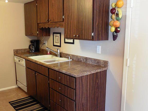 Currently running an application be sure verify availability. 55+ Community, Primary renter MUST be 55+ and additional occupants may be 18+. Remodeled Home in Peoria offers 2 bedrooms, living room, den, eat in area, 2 Baths and fully enclosed patio that is the length of the home! Private yard is fully fenced with block fencing. Easy care desert landscaping front & rear.Wood laminate floors throughout & tile in kitchen & baths. Neutral colors, ceiling fans in every room. Light & Bright, great floor plan. Lots of storage space, walk-in closet in master bedroom. Lanai is fully enclosed with indoor/outdoor carpet and is a true extension of living space to this beautiful property. One car extended length garage. All appliances are included for your convenience. You will love this home.
