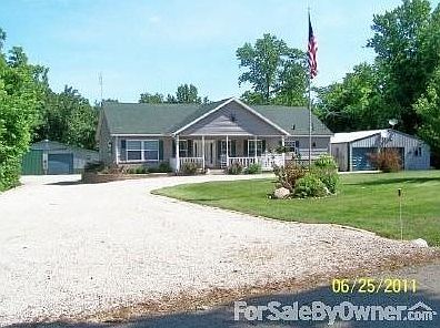 Beautifully maintained horse property on 2.52 acres awaits you. You will be 5 minutes from your hitching rail to the Middlefork Equestrian Trails. Property is adjacent to Kickapoo State Park. This lovely setting features a ranch home with 3 bedrooms, 2 baths and a 30x30 detached garage. Home features oak cabinetry throughout with many upgrades including solid 6 panel doors, door trim, built-in entertainment center in living room, built-in china cabinet & wet bar in dining, tile edged kitchen counters and all stainless steel appliances. The garage (200amp) also has a 2nd kitchen/entertaining area (appliances negotiable with offer) The barn is wired (100amp), water as well as a lean-to stable. There is a staging area for horses on property. Koi pond is ready to enjoy.