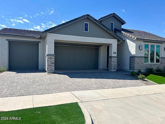 At the heart of the home lies the culinary haven—the kitchen—an exquisite display of modern craftsmanship. Two-tone cabinets in pristine white and soothing gray lend a touch of refinement, while sleek black fixtures and hardware provide a striking contrast, infusing the space with contemporary allure. (CLICK TO READ MORE) Escape to the tranquil haven of the Primary Suite, where opulence intertwines with comfort. Luxuriate in the sumptuous ensuite bathroom, boasting dual sinks accented with sophisticated black hardware. Unwind in style with a separate tub and shower, meticulously tiled to the ceiling, imparting a sense of sleek sophistication. Just like a world-class resort, this community offers a luxurious community pool, splash pads, numerous parks spread throughout, the Steadfast farm, the Handlebar Diner, and its very own state-of-the-art clubhouse "The Mark". The Mark hosts events throughout the year and a wide variety of family-friendly games to play. Come and experience the perfect blend of luxury and functionality in this exquisite single-story home.