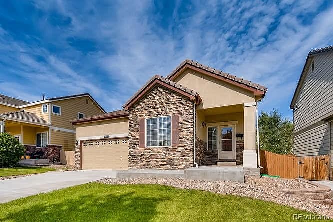Live in this move-in ready ranch in Frontera Village. This property has new paint throughout the interior and new carpet on the main level and stairwell. The main level offers a flex room that can be used as an office, adjacent to the living room with towering ceilings and a cozy fireplace. Featuring a master bed and bath, and a kitchen and dining area that opens to the backyard deck through the french doors that flood the room with natural lighting. The basement is fully finished and offers a conforming bedroom with a semi-private nook that can be used as a game or craft area. Plus, plenty of storage and a fully finished bathroom. All located near DIA Interstate highways. This gem is ready for the picking.