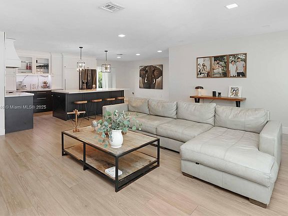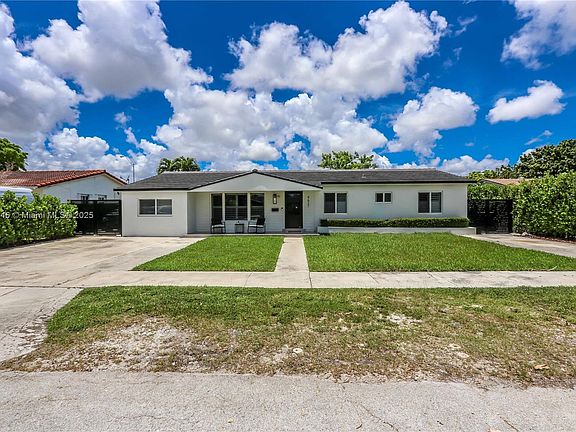 Beautifully remodeled single-family home with everything updated in 2023, including a brand-new roof, impact windows and doors, kitchen, and bathrooms. Features imported porcelain Spanish flooring throughout and a luxurious new master bathroom. Spacious split floor plan includes an in-law master suite with its own bathroom and private side entrance—perfect for guests or extended family. Offers a large den or office space, terrace, and expansive patio ideal for a future pool. The master bedroom includes a top-of-the-line custom closet system. Plenty of parking plus side space to park a boat. Move-in ready!