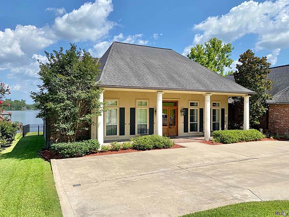 This custom built home sits on a 100ft lot on False River. Walking in to the open living area you are greeted with a beautiful view of the lake through the wall of windows, 12ft ceilings, hand scrapped hickory wood floors, gas fireplace with granite surround, built-in shelving and storage, formal dining area, and custom drapes hand carved crown molding, and built in stereo system. The kitchen features additional dining with a breakfast area and eat at bar with grooved granite counter tops, custom cabinets, large pantry, stainless appliances that include refrigerator, 5 burner gas stove, built in oven and convection oven and built in microwave.On the left side of the living area is the master bedroom with windows looking out to lake, and en suite bathroom with double vanity, soaking bath tub, private toilet, 2 walk-in closets, separate shower, ceramic tile flooring, and ceiling fan. There is an additional bedroom and hall bathroom with granite counter tops and ceramic tile flooring on this side as well. On the right side of the living area there are 2 additional bedrooms, one with windows looking out to lake, and hall bathroom with granite counter tops and ceramic flooring.There is a laundry room with tile flooring, storage cabinets, sink, additional refrigerator, washer and dryer. The living area has access to the 674 sq foot covered porch through the living area and kitchen. The back porch features an outdoor kitchen with granite counters, stainless steel appliances, sink, bbq pit, gas burner, and refrigerator, outdoor stereo system, tv, 5 ceiling fans, tongue and groove wood flooring and iron railing. The fenced back yard leads to a 28x16 pier with and 8ft lower deck, 6ft walk way around, 2 remote controlled boat lifts, double sink fish cleaning station. The exterior of the home is landscaped and also offers a garage with storage room, whole home generator, full 6 zone sprinkler system, leaf filter on gutters around whole house, 2 AC units, 2 hot water heaters, fl