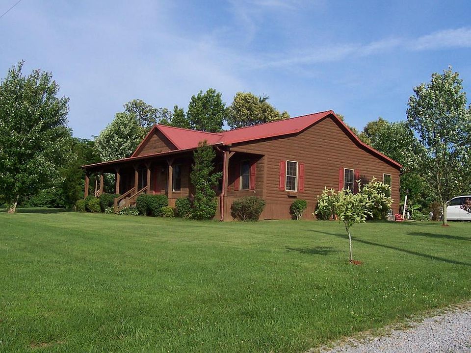 This beautiful log sided home sits on 6+/- acres with a pond. The location is close enough to town for convenience and just the right distance out for peace and quite. The serene country setting with garden like seclusion makes this a must see property. The great room has vaulted stain wood ceilings and walls with plenty of kitchen cabinets. The large stone fireplace adds warm to this cozy space. The central heat and air has recently been updated with a dual source heat pump. There is a nice outdoor living area with hot tub. External wood burning furnace adds additional heat to the home.There is a separate studio with porch. Detached two car garage.