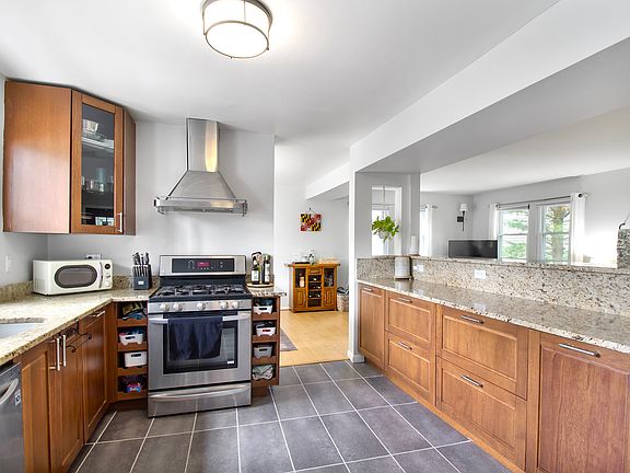 Nestled in the Oakland Mills community and part of the Columbia Association, this inviting 4-bed, 2.5-bath single-family home offers over 2,150 square feet of comfortable living space and backs to a tranquil, tree-lined setting. Step inside to find a bright and airy living area featuring hardwood floors and abundant natural light. The updated kitchen boasts granite countertops, stainless steel appliances, generous cabinetry, and tiled flooring. A charming breakfast nook or reading area, complete with a wood-burning fireplace and sliding glass doors, provides an ideal spot to relax and take in the peaceful views of the backyard. The adjacent dining area, with its own sliding door leading to the rear deck, offers seamless flow for indoor-outdoor entertaining. A conveniently located powder room completes the main level. Upstairs, the spacious owner's suite features two large closets and a private en-suite bath with a dual-sink vanity and a tub/shower combo. Three additional bedrooms share a well-appointed hall bath, offering comfortable accommodations. The finished walkout lower level features recessed lighting, a dry bar, and a versatile rec room, ideal for game days, an in-home office, or personal gym. A dedicated laundry room with extra storage and a separate unfinished area provides even more functional storage space. Step outside to enjoy a variety of outdoor living spaces, including a newly installed "maintenance-free" Trex deck (2024), a lower-level patio, and a fully fenced backyard. For added peace of mind, the home is equipped with a video doorbell, interior and exterior security cameras, flood sensors, and Simply Safe smart smoke detectors. The private driveway offers tandem parking for two cars. Ideally located just minutes from Whole Foods, dining, and Columbia Association amenities such as pools, tennis courts, and bike paths, with easy access to Columbia Mall, Fort Meade, BWI Airport, and major commuter routes. Don't miss the opportunity to make this well-appointed home yours! Tenant responsible for all utilities. No breed restrictions on pets