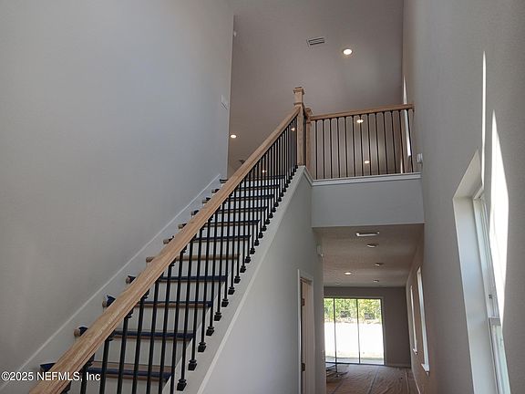 NO CDD! Under Construction. Enter the Amelia II into an impressive 2-story foyer and you'll find abundant, usable living spaces. The convenient main-floor owner's suite includes a private bathroom with tile shower and roomy walk-in closet. You'll also find the 1st floor offers an inviting open-concept living space, anchored by a kitchen with a spacious island and pantry overlooking a casual dining area and great room with covered patio accessible by a triple sliding glass door, plus a convenient 1/2 bath for guests. Upstairs you'll enjoy additional hangout space in an expansive game room/loft, 3 more generous bedrooms, all featuring walk-in closets, plus another full bath and half bath. The community boasts abundant green space with a walking trail and sidewalks, and is located just a short drive from Amelia Island, Fernandina Beach, and historic downtown areas. Colors may vary.