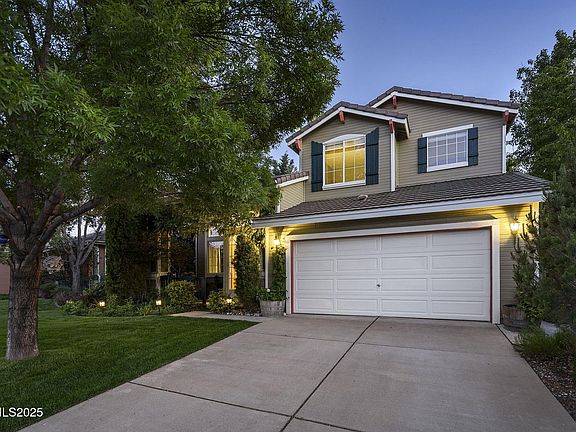 Upstairs, the bright and airy primary suite showcases stunning Mt. Rose views, a recessed ceiling, and a spa-like bath with a garden tub, separate shower, and dual closets. Two additional bedrooms, a full bathroom, and a cozy loft complete the second floor.