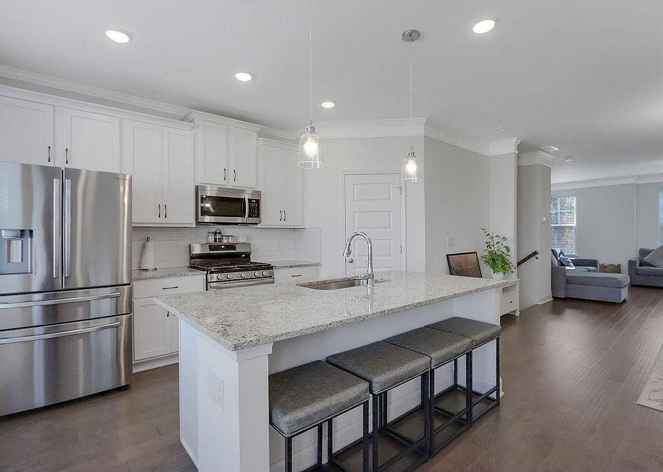 Welcome home! Amazing opportunity to live in Marietta just 3 miles from the Square! This three-level home features 4 bedrooms/3.5 baths. Upon entry, there is a bedroom/flex space and full bath on the terrace level with 2-car rear entry garage. Stairs to the main level open up to an open dining room, family room, and spacious kitchen with SS appliances, granite countertops, and 42" shaker-style cabinets. Adjacent to the kitchen is the partially covered/and uncovered patio. Third story features a spacious owner's suite with a walk-in closet, and a full ensuite with dual vanity. 2 additional bedrooms, and a full bath, down the hall. Easy access to schools, parks, shops, restaurants, hospitals, and Marietta Square!