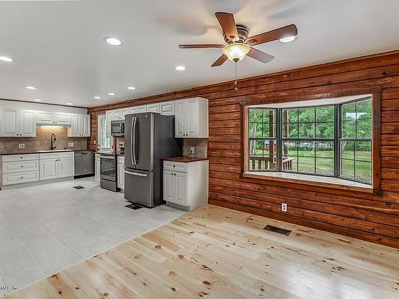 WANT COUNTRY, YET BE CLOSE TO EVERYTHING? THIS IS IT! Updated throughout, this beautiful 3/2 log home is situated on peaceful 3.82 acres. Enjoy country living but minutes to the Oakleaf Town Center and Blanding Blvd with all the shopping it has to offer. Enjoy the wonderful 2 sided wrap around porch, just waiting for a couple rocking chairs. Exterior of the home has recently been painted, including the porch. Inside you'll find a cozy family room with wood burning fireplace & vaulted ceiling. Just off the family room is the breakfast nook with bay window and window seat. Completely updated kitchen with soft close drawers and cabinets, brand new stainless appliances. Downstairs you'll find two bedrooms, the large laundry room and updated guest bath. Upstairs, is a spacious loft, would make a great 2nd family room or game room area. Just off the loft is the master suite with 2 walk in closets, and a completely updated master bath with large walk-in shower with custom tile, and new dual vanities and updated lighting. Off the loft area, is a nice deck to enjoy the nature views of this beautiful property.
