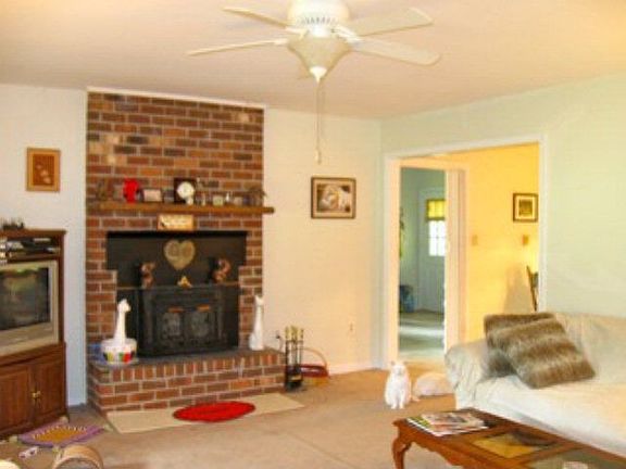 One story large home on top of gentle slope for easy living. Our Virginia Place gracefully overlooks a lovely front lawn & has whispering woods in back: the best of both. Feels private. New architectural shingles on all buildings. Large sunporch. Ceramic tile in kitchen, back hall and generously sized utility room. Boat ramp, restaurant, river beach, marina all within a block or so. Some furnishings available so bring your groceries and relax right away!