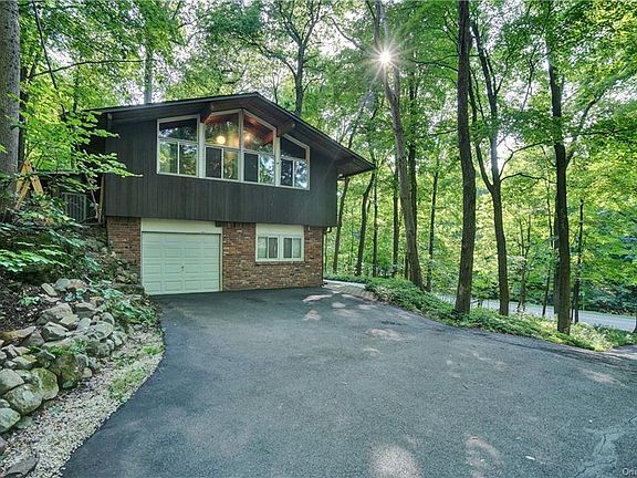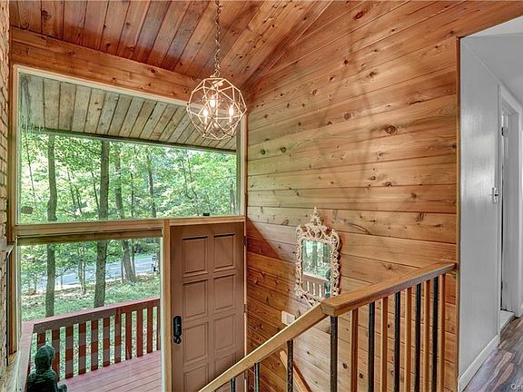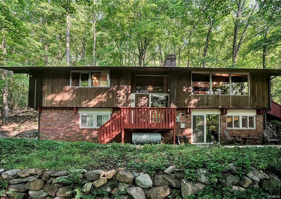 Set way back from the road and high on the hill, discover this vibey, contemporary bilevel sitting perfectly among the fresh air and tall trees. If you're a nature lover or privacy seeker, than this is the perfect home for you. Explore parks and trails in minutes while still being close to major roadways and easy NYC commuting options. Newer driveway offers plenty of parking and welcomes you to a slate walkway and front patio. Wood planked cathedral ceilings, skylights, exposed beams and almost floor to ceiling windows invites the outside in and makes quite the impression. Wide planked pine flooring (under the floating floors and in great condition) and exposed brick fireplaces creates a rustic, chic feel that lends itself to an industrial or mid-century modern design. Large deck with room for your table, chairs and hammocks. Fully screened in porch and additional deck offers a tranquil workout or meditation space. Brand new kitchen appliances, new central air, young septic system and hot water heater.