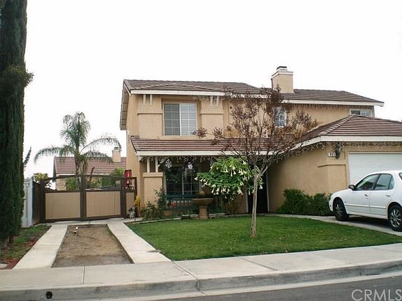 No HOA!!! Price to sell !!!This beautiful Ready-To-Move four bedroom two and a 3/4 bath home is located in a great neighborhood, Property is located very close to the Perris State Recreation Area and Lake Perris, including bike and jogging trails. This neighborhood is comprised of newer homes, new schools, and parks. Access to major freeway is good. It is open and bright with lots of windows and custom paint throughout its 1,818 Square feet. Home is Ready to Move-in with upgraded large tile floors kitchen granite counters, interior paint, front and rear landscape and hardscape. Downstairs bedroom great for guests or dearest relative! Home also features a Loft or game room on the 2nd floor, large kitchen/dining room and tile throughout first floor and in all baths, pine wood on stairway and laminate floor throughout 2nd floor. Large master bed, walk-in closet and master bath with tub and shower. Beautiful Iron Gate gives access to an ample R.V. parking. Rear yard offers a covered patio, trees, pergola and an ample yard. Physically home shows 4 bedrooms 2.75 baths, this differs from information on tax card, buyer to check with city. Easy to show, hurry! It won't last!