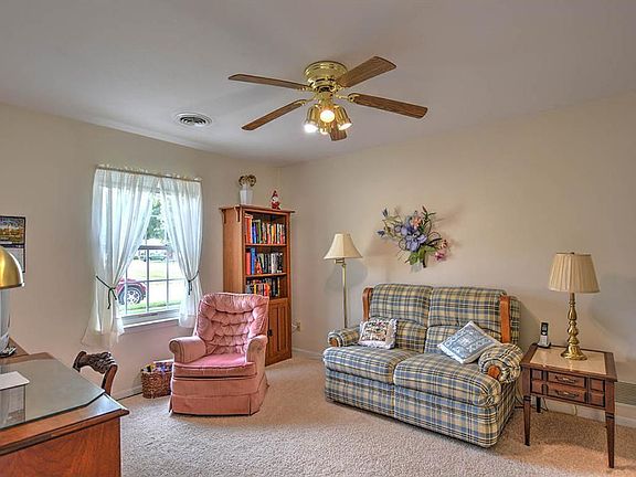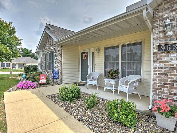 One-owner corner condo has been lovingly maintained. A stand alone unit with a 2 car garage and storage cabinets Rather than a third bedroom this unit, built for current owner, has a small den/office. This one is ready for you! Newer neutral carpet and laminate in kitchen. Kitchen has had counter-tops replaced. Master bedroom features tray ceiling, walk-in closet and master bath has generous soaking tub as well as shower. Association replaced roof about 4 months ago. Plus this unit was constructed with an underground sprinkler system. Rear screened porch allows you to enjoy the outdoors. HOA fees covers lawn care, snow removal, exterior maintenance and roof replacement. HOA fees - $185 monthly or may be paid quarterly.
