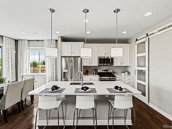 Welcome to this nearly new, exquisitely maintained, former Richmond American model home. This property boasts all the best Richmond offered and you'll love it from the moment you step through the front door. A chef's kitchen with quartz countertops, separate pantry closet and large island are an entertainer's delight. The open concept blends form and function, with informal dining space spilling into living under high ceilings and showered with natural light. Warm up those Colorado Winter nights with the cozy gas fireplace. Venture upstairs to find a spacious primary retreat with double vanity, large shower, higher-end finishes and a window showcasing this masterful space. Two additional bedrooms enjoy a full bathroom with a tub, and all meet near the inviting 2nd floor loft, perfect as an office, play area or second living space. Step outside to experience the view for miles. It's a refreshing, rare treat to not "share" a backyard with your neighbor. You'll love the covered patio for dining in the shade, or the custom paver stone patio for soaking in the sun. There's even a custom built-in sandbox that can be easily finished off as paved patio. You'll see wildlife, sunrises and double rainbows from here. But wait, there's more! The outdoor shed, blended to match the house, boasts ~115 square feet of storage space for tools, toys and more. Still not enough storage? Well, you're covered with a spacious 2-car garage with added loft storage...and there's still more! Abundant storage in the conditioned and very usable, high-ceiling crawlspace rounds out this wonderful property. You'll be glad you picked this one. You'll be glad to call this one home.