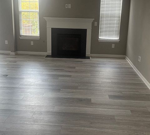 The main level features brand-new luxury waterproof vinyl plank (LVP) flooring installed in 2025, offering both style and durability. The open-concept layout includes a spacious great room with a cozy fireplace and large windows for natural light. The upgraded kitchen boasts 42" cabinets, stainless steel appliances, ample counter space, and access to a private deck with serene views of a nature preserve. Upstairs, the primary suite includes a walk-in closet and full bath with dual vanities. A versatile loft area provides flexible space for a home office or lounge, and the second-floor laundry room comes with a washer and dryer.
