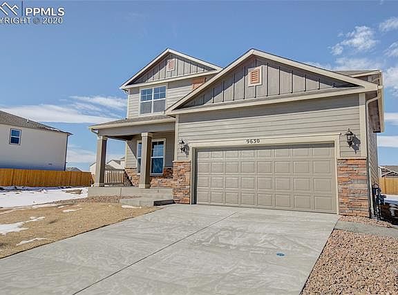 Exquisite comfort of master bedroom features a sleek bathroom, a wardrobe-expanding walk-in closet. Spare bedrooms have been designed to maximize privacy, personal space. Study presents a versatile opportunity to create your ultimate home office, or fun and games room. The ample storage and prep room make the gourmet kitchen ideal for hosting memorable holiday feasts. Bonus features include a covered porch, downstairs powder room, and a spacious basement. This 2,600âacre new home, golf, and recreation community in Colorado Springs keeps you close to life's necessities and pleasuresâbut feels a world apart from city hassles.Right in the neighborhood, the award-winning Antler Creek Golf Course is perfect for sharpening your game or just greening up your views. A 42,000âsquare-foot recreation center, indoor and outdoor pools, parks and trails keep you moving. And the lively Creek View Grill is your go-to spot for everything from post-game drinks to dinner with friends.This Colorado Springs new home community also offers its own elementary school and high school in the highly-respected Falcon School District 49. With proximity to everything from groceries and dry cleaners to the airport and military bases, Meridian Ranch simplifies your life. And makes room for the things that matter most.You'll find a wide of array of high-quality homes in a variety of styles in the Meridian Ranch community. Designed to fit your lifestyle, the homes in this community come in a variety of floor plans with an extensive selection of options and upgrades.There's something for everyone at Meridian Ranch. If you love the glamour of the natural Colorado landscape, you're sure to love what this community offers.