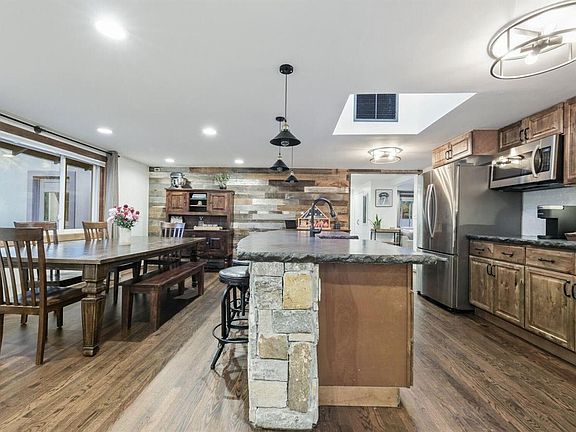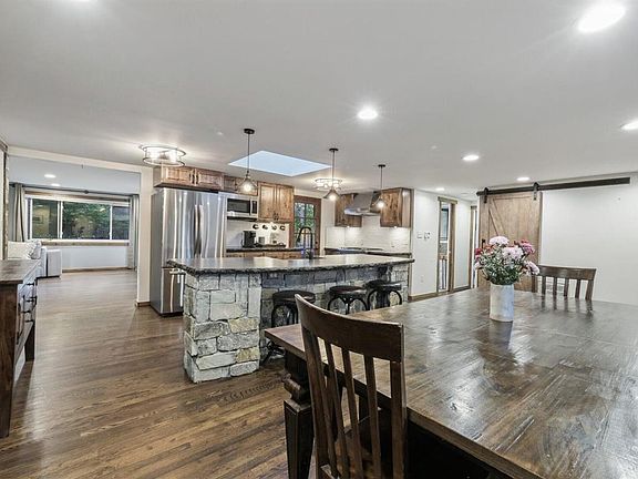 - Description: Custom Concrete Countertops & Island W/Live Edge, Gas Stove, Stainless Appliances, Hammered Copper Farmhouse Sink, Pantry W/Barn Door