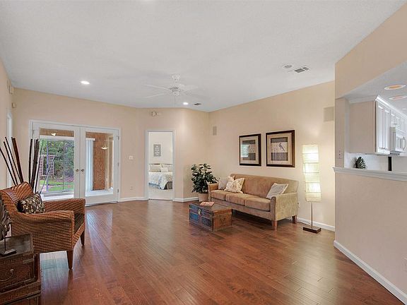 Beautiful home in very desirable gated community. Open concept, plus a separate office, hardwood floors and tile. Beautiful landscape yard that is fenced. Back's up to green belt area. Florida room with hottub- so many pluses to this must see home in the Heron's Forest community. The large central kitchen has tons of counter space, island and new microwave . Steam away the cares of the day in the master en suite bathroom, or relax in your own personal hot tub. This desirable neighborhood offers a swimming pool, tennis court and gathering room and a boardwalk nature trail to your own deeded access beach of Perdido Bay! All of this and conveniently located minutes from back gate of NAS, Navy and VA hospitals, shopping, schools and beaches. What a wonderful place to call home. Measurements taken from public records; buyer and agent to verify all room dimensions.