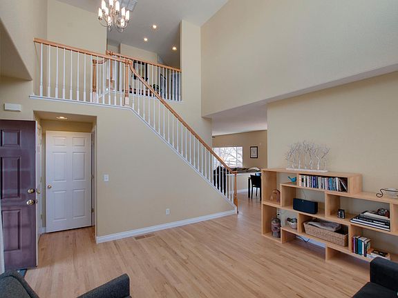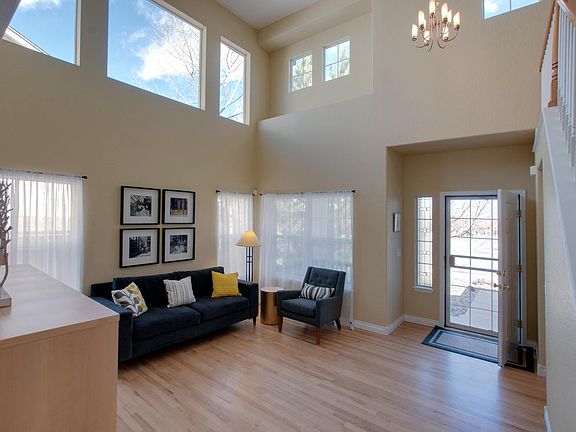 Beautiful setting in highly desirable Trailmark backing to open space! One of a kind lot in a newer development. Functional, open and efficient floorplan with 4 bedrooms on 2nd floor, 1 on the main floor and a finished basement for bonus flex space! The home is flooded with natural light and finishes include hardwood floors throughout the main floor, stainless appliances and newer carpet. Hiking, biking and trails right out your back door! This is the Colorado Lifestyle! Home comes with energy-saving solar panels.